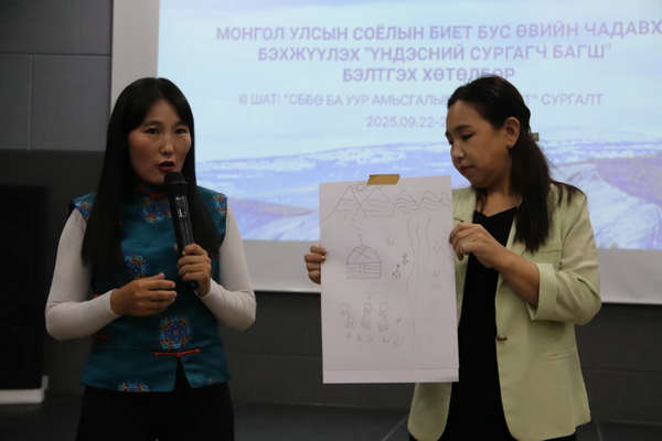 The five-day workshop is led by UNESCO facilitator Saruul Arslan and national expert Erdenesuvd Bayaraa, with additional input from UNESCO facilitator Rahul Goswami through pre-recorded video lectures. Combining international case studies, group work, and an action lab, the program brings global perspectives to Mongolia’s heritage elements while exploring the links between ICH safeguarding and sustainable development. Key topics include inventorying and disaster risk reduction, community participation, safeguarding ICH in emergencies, the impact of climate change on ICH, and strategies and considerations for responding to climate change.