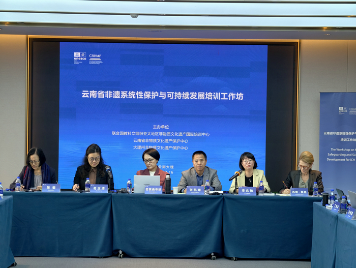 Over the course of four days, the three experts will explain knowledge and emerging topics related to the Convention for the Safeguarding of the Intangible Cultural Heritage, as well as the current state of ICH safeguarding in China. They will guide participants in sharing and exchanging ideas and exploring issues related to the holistic safeguarding and sustainable development of ICH. During the workshop, participants will also conduct field visits on various elements of Yunnan’s ICH, such as the Tie-Dyeing Techniques of the Bai people, Tea Customs (Three Courses Tea of the Bai people), Clay Sculpture, and Jia Ma Art (a form of traditional woodblock printing).
